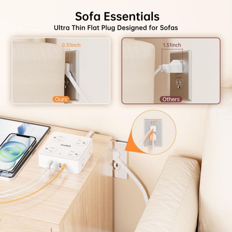 ElectrónicaAccesorios para electrónicaCasa Inteligente10FT Extension Electrica, Multicontacto Enchufe Plano con Protector de sobretensión, 8 enchufes CA, 4 Cargadores USB (1 Puerto U