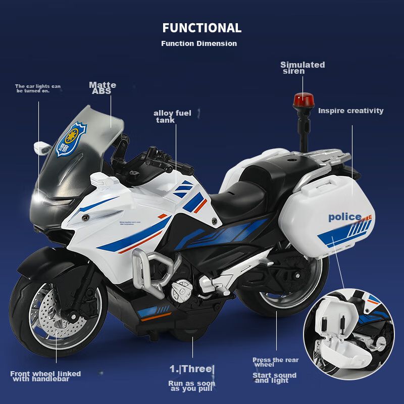 1/10 Motocicleta Policial Aleación Efectos de Luz y Sonido 20.5CM