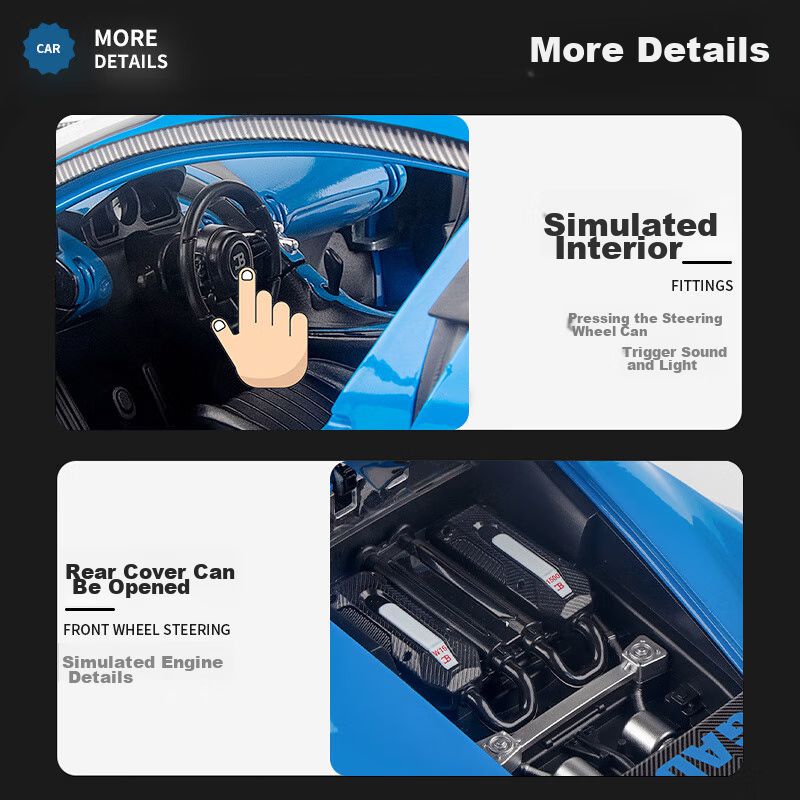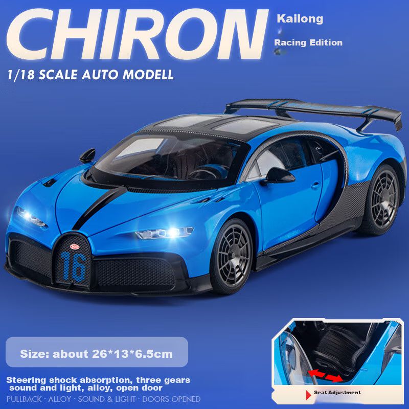 1/18 Coche Modelo Bugatti Chiron Efectos de Luz y Sonido 6.5 cm x 26.6 cm x 13 cm
