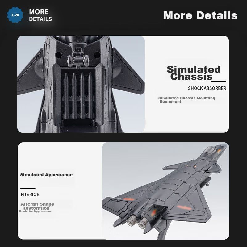 Bebés y juguetesJuguetesJuguetes para Niños1/72 Caza J-20 Modelo de aleación con luces y alas ajustables 23x15 cm