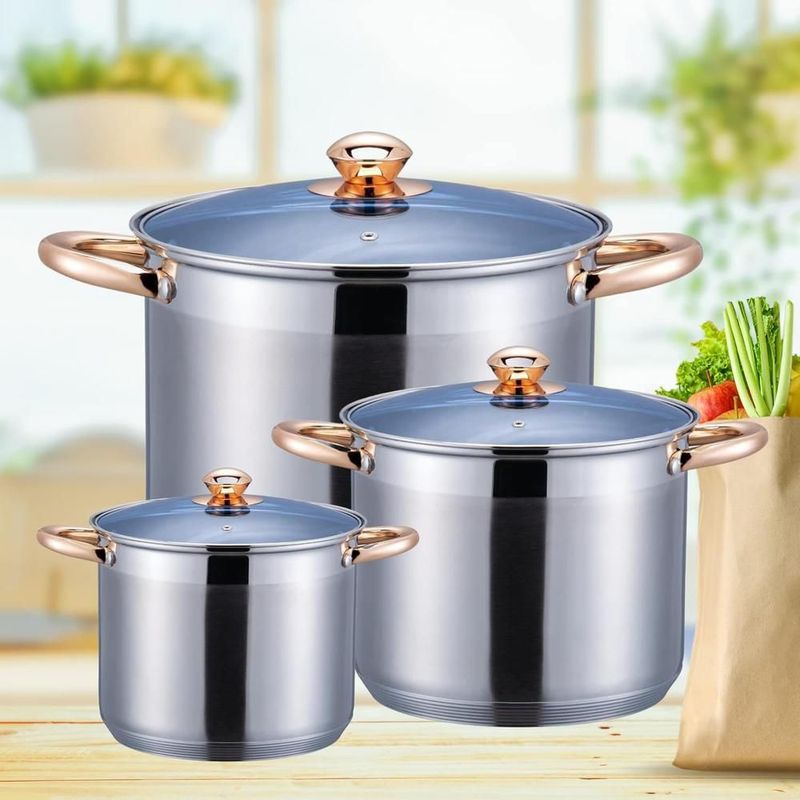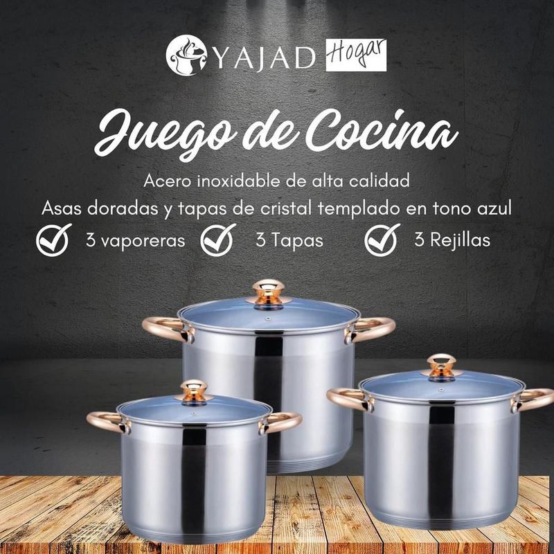 HogarCocinaOllas y Vaporeras3 OLLAS VAPORERAS CON REJILLA 9L, 11.1L Y 13.5L ACERO INOX