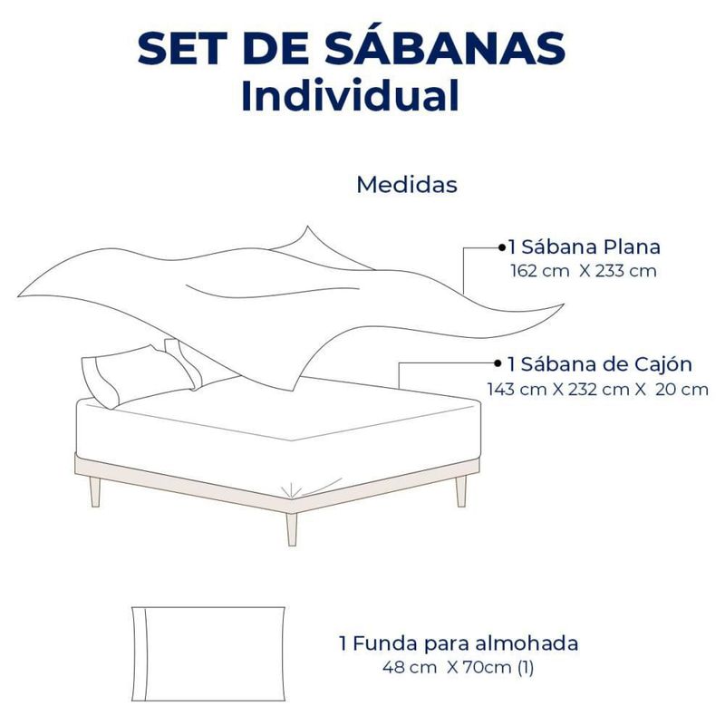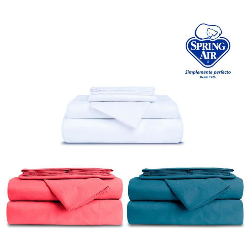 3 Pack Sabanas Individual Spring Air: Azul, Blanco, Coral