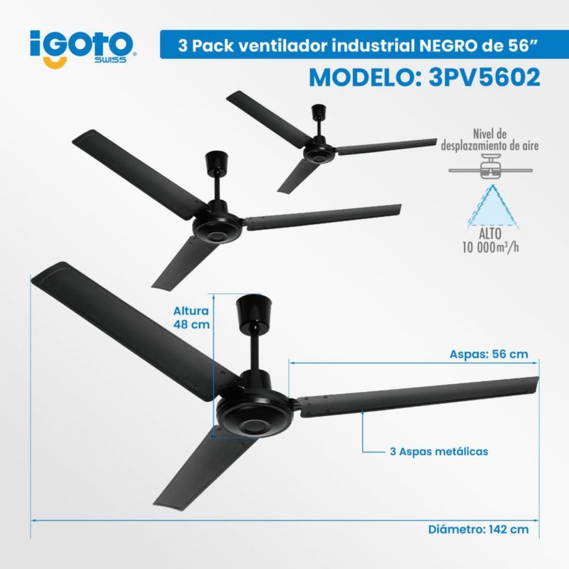 3 ventiladores Industriales 3 aspas