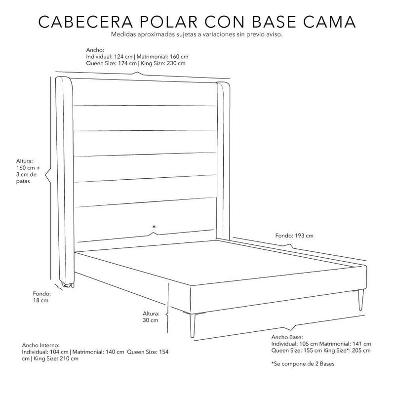 Cabecera Queen Size Dicasa Polar Azul Marino + Base cama Slim CZD