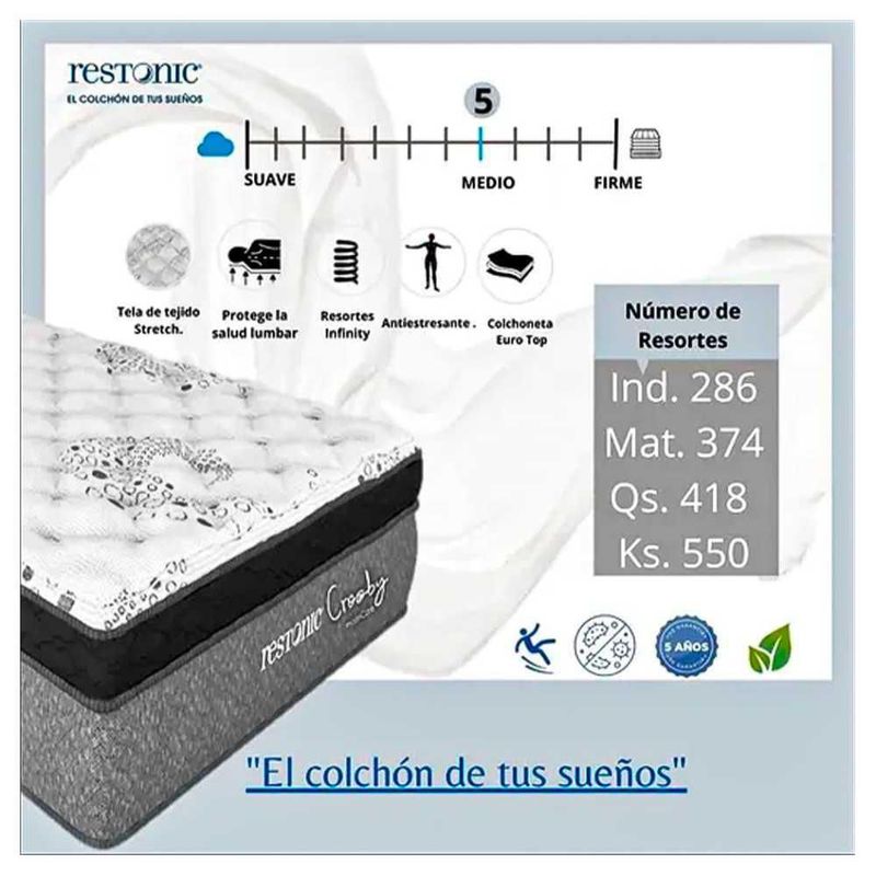 Colchon Restonic Queen Size Mooncare Crosby Euro Colchoneta Premium