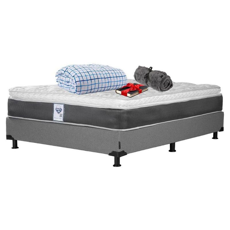 Colchón Matrimonial Marte + Box Orly Gris + Edredón Palermo RGH