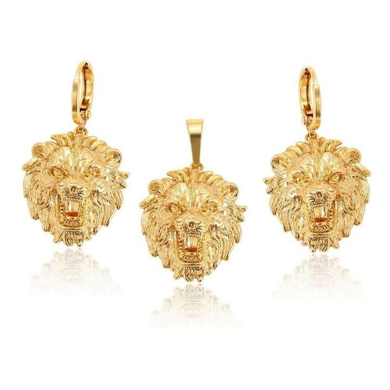Fino Collar Y Aretes León Oro 14k Laminado 45 Cm