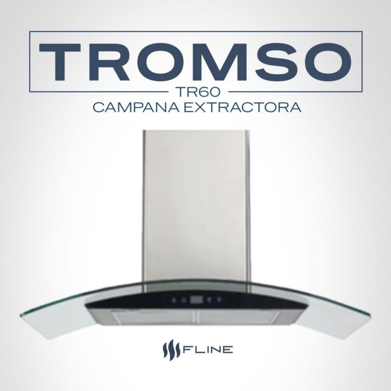 Línea blancaCocinaCampanasFLINE | Campana de cocina 60 cm | DE PARED | Controles Touch |extractora | cristal curvo y acero Inoxidable | 3 velocidades | Tromso 60