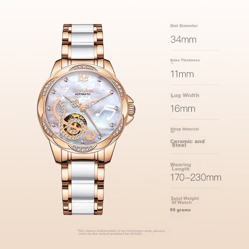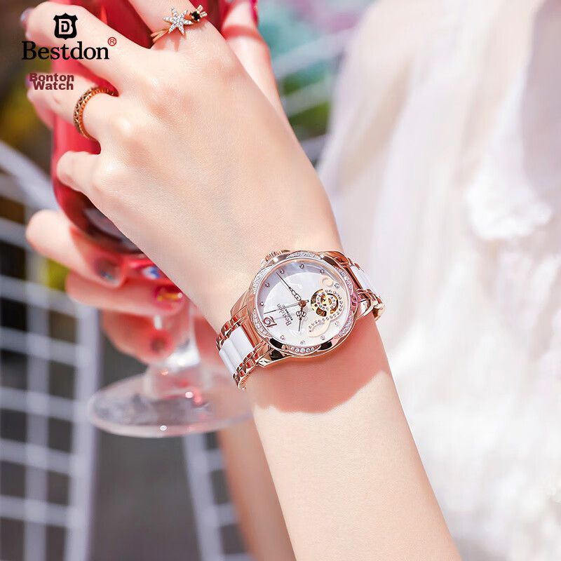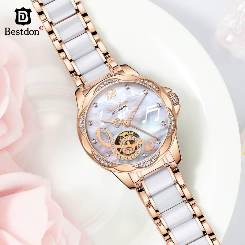 Reloj Bestdon BD7183L automático mujer cuero rojo