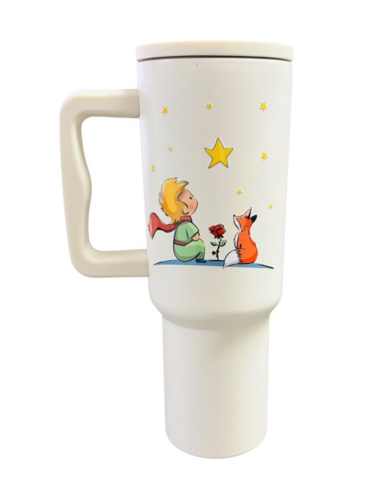 Termo de acero inoxidable color blanco de 1.2 litros, El Principito, libre de BPA.