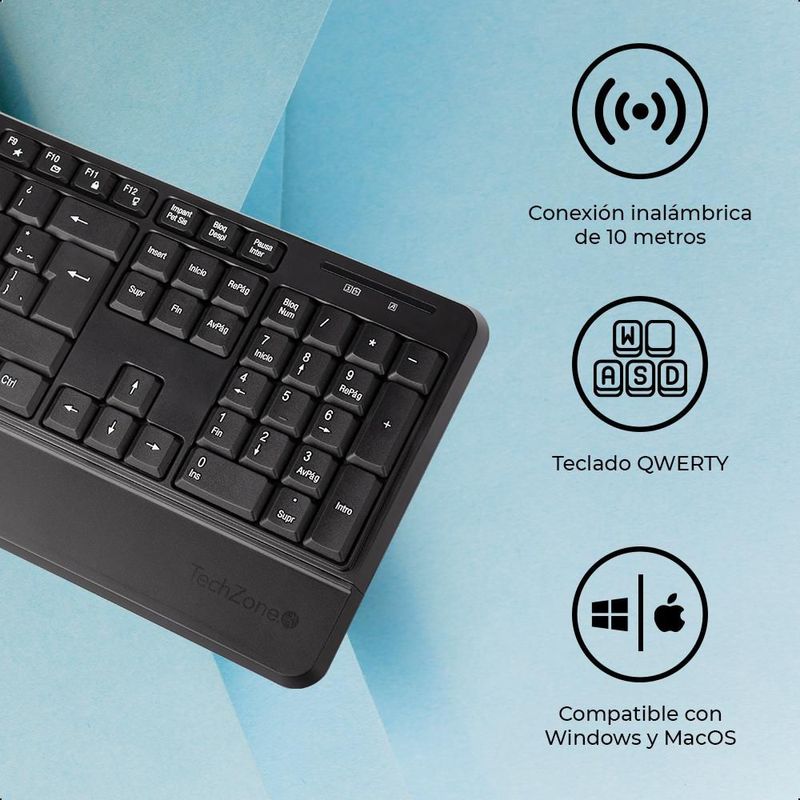 TechZone - Kit Teclado y Mouse Inalámbrico Proof
