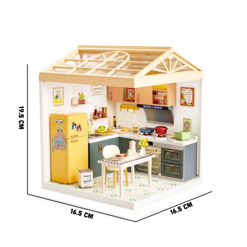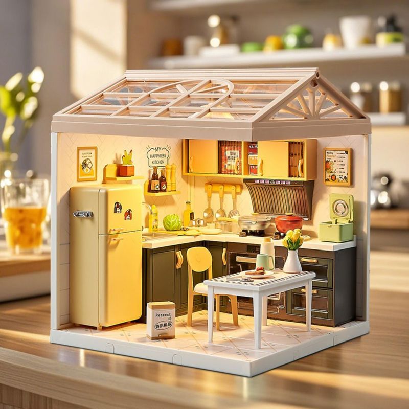 Juguete Casa en Miniatura Cocina con Muebles, Accesorios y Efecto de Luz Nocturna