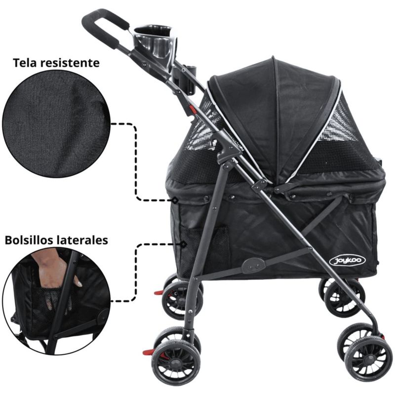 Carriola para Mascotas Cochecito para Perros y Gatos Pequeños - Medianos Ligera y Plegable con Freno Bandeja Portavasos - Negro