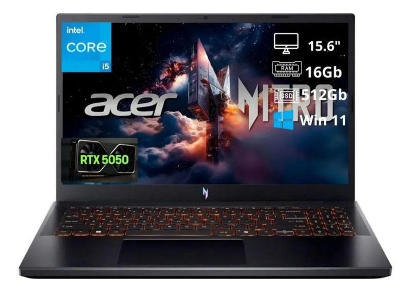 CómputoPortátilesLaptopsAcer Nitro V 15″ Gaming Laptop con Intel Core i5‑13420H, NVIDIA RTX 5050, 16 GB RAM, 512 GB SSD, pantalla FHD y Windows 11 para juegos y multimedia.