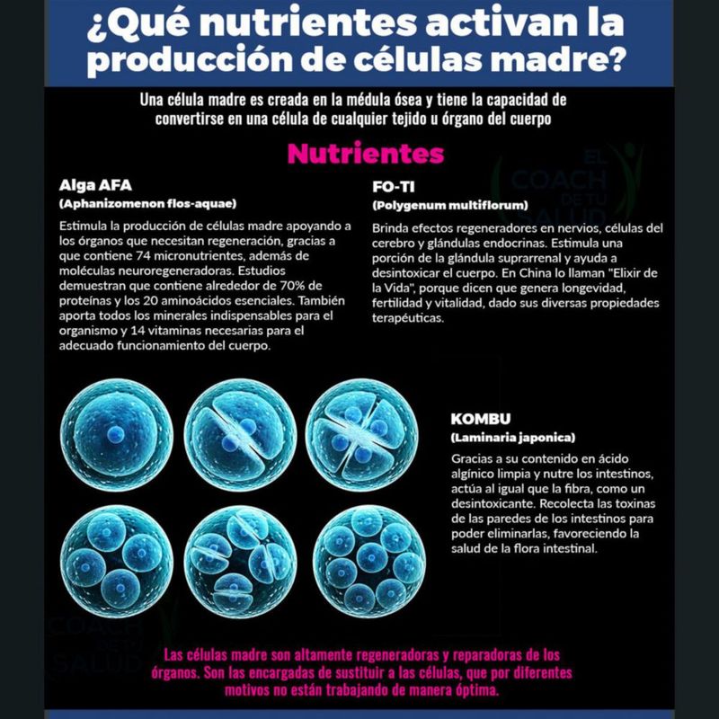 Salud y Equipamiento MédicoFarmaciaVitaminas, Minerales y SuplementosActivador de Celulas Madre alga AFA y Fo Ti 60 caps Boticaté
