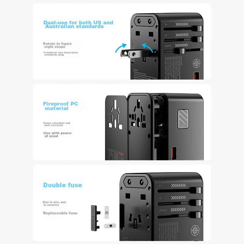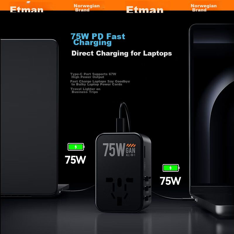Adaptador 75W Tipo C Etman ACDS32 de Viaje Enchufe Multiple Salida Multiple