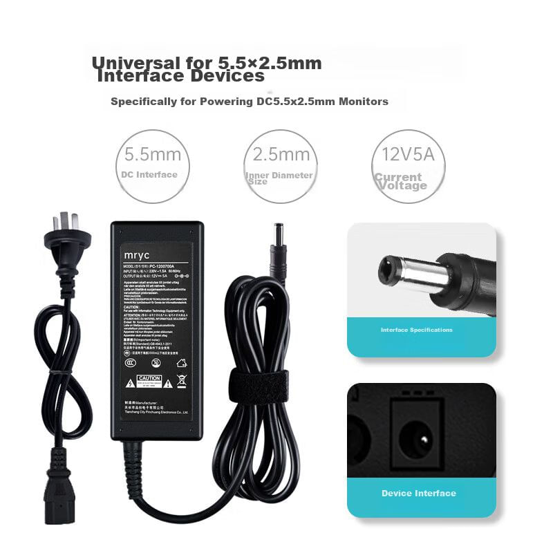 CómputoAccesorios y periféricosCargadores PcAdaptador De Poder Mryc 12V5A Universal Negro
