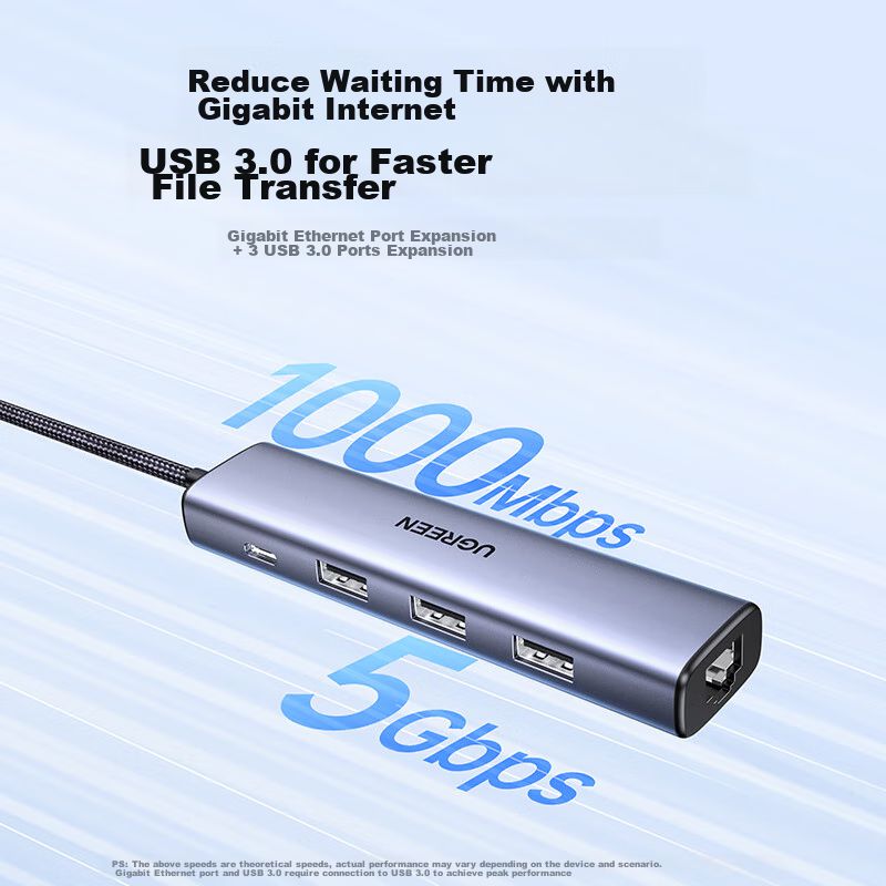 TelefoníaAccesorios para celularesCargadoresAdaptador Usb 3.0 A Ethernet Gigabit Ugreen Con Hub Usb-C Y Puertos Usb 3.0
