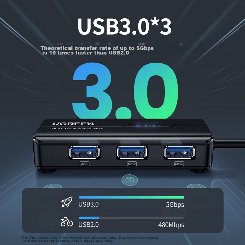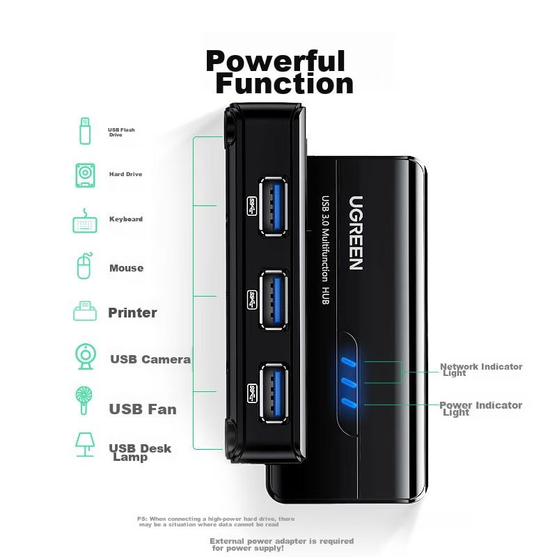 Adaptador Usb A Ethernet Gigabit Con Hub 3 Puertos Ugreen Para Laptop