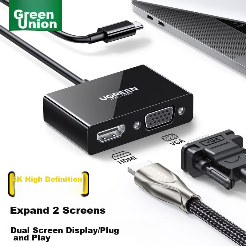 Adaptador Usb-C Ugreen Hdmi Y Vga 4K Para Doble Pantalla