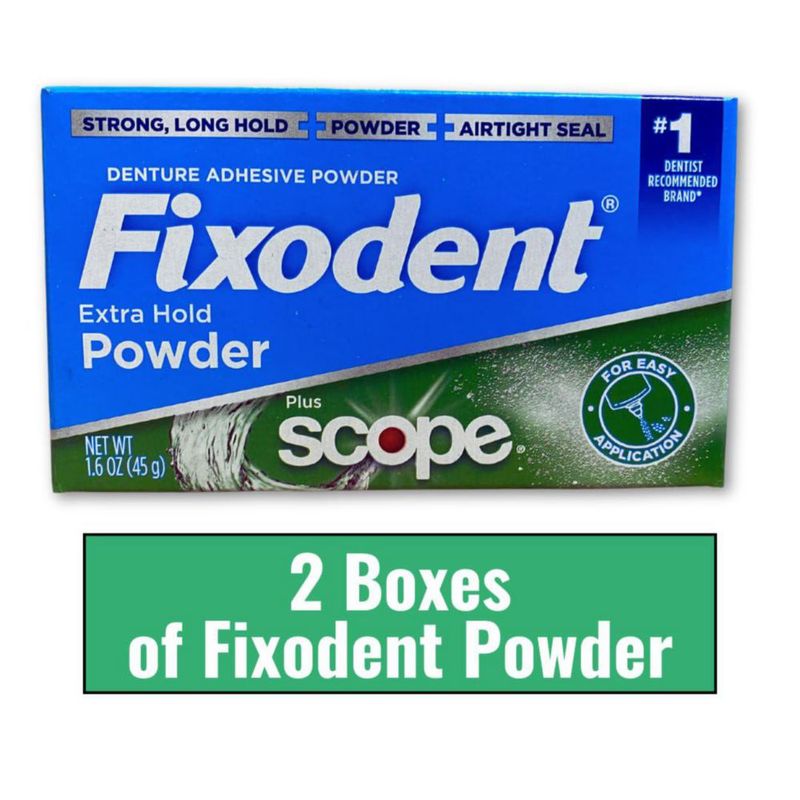 Adhesivo para dentaduras Fixodent Extra Hold Powder paquete de 2 con brocha