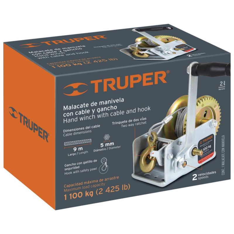 HerramientasManualesOtras Herramientas ManualesAM3K ofrece malacate de manivela Truper MAW-54C con cable, capacidad de 650 kg, diseñado para carga y arrastre de trabajo medio en campo o taller.