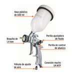HerramientasConstrucciónAccesorios para PinturaAM3K ofrece pistola de gravedad HVLP Truper Expert PIPI‑440X, boquilla de 1.4 mm, vaso plástico de 600 ml; acabado fino y control total.