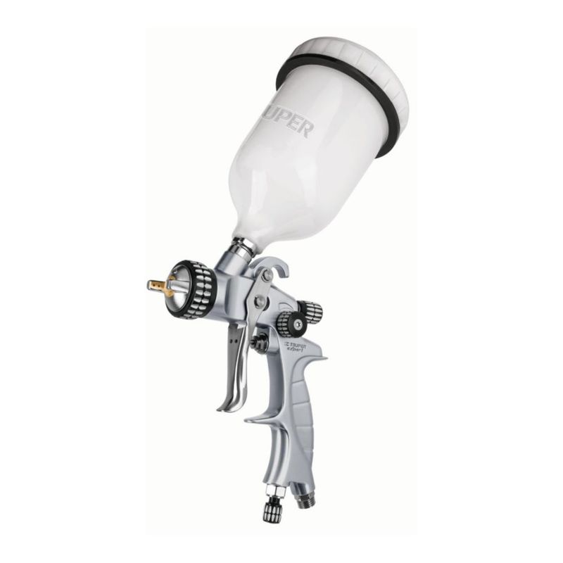 AM3K ofrece pistola de gravedad HVLP Truper Expert PIPI‑440X, boquilla de 1.4 mm, vaso plástico de 600 ml; acabado fino y control total.
