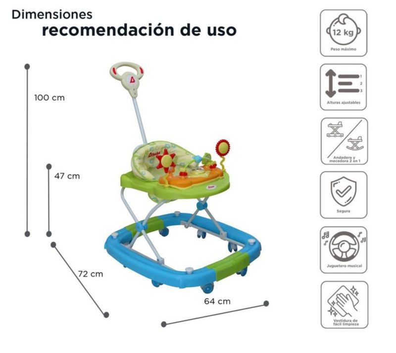 Bebés y juguetesBebésAndaderasAndadera Mecedora D'bebé Sunshine 2 En 1 Bastón Verde