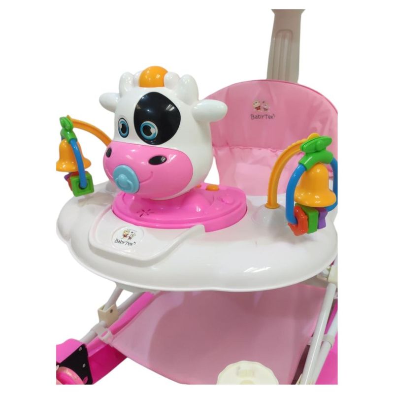 Andadera Mecedora Musical con Llantas de Gel,Baston,Toldo Vaca Rosa