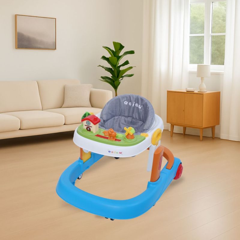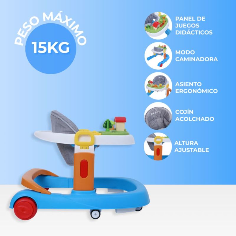 Andadera Para Bebé Aeiou A028 2 En 1 Ajustable Azul/Naranja