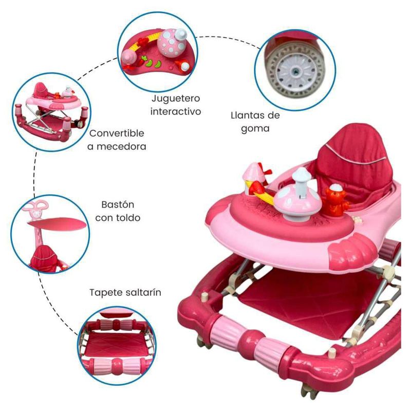 Bebés y juguetesBebésAndaderasAndadera para Bebe Caminadora Plegable 3en1 Juguetero Mecedora Rosa