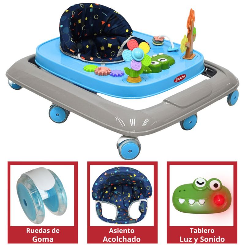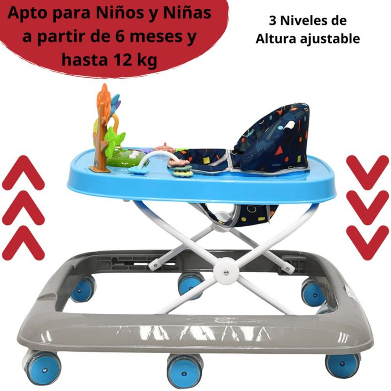 Andadera para Bebé Coco Luz y Sonido Altura Ajustable Plegable Ruedas de Goma Apta desde 6 meses - Azul