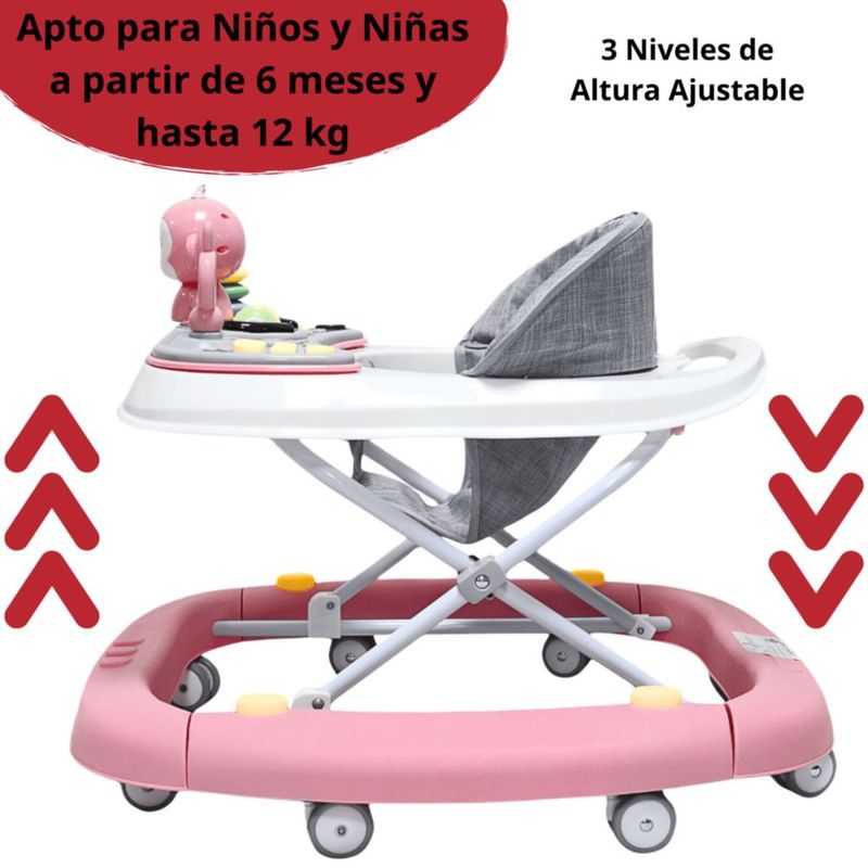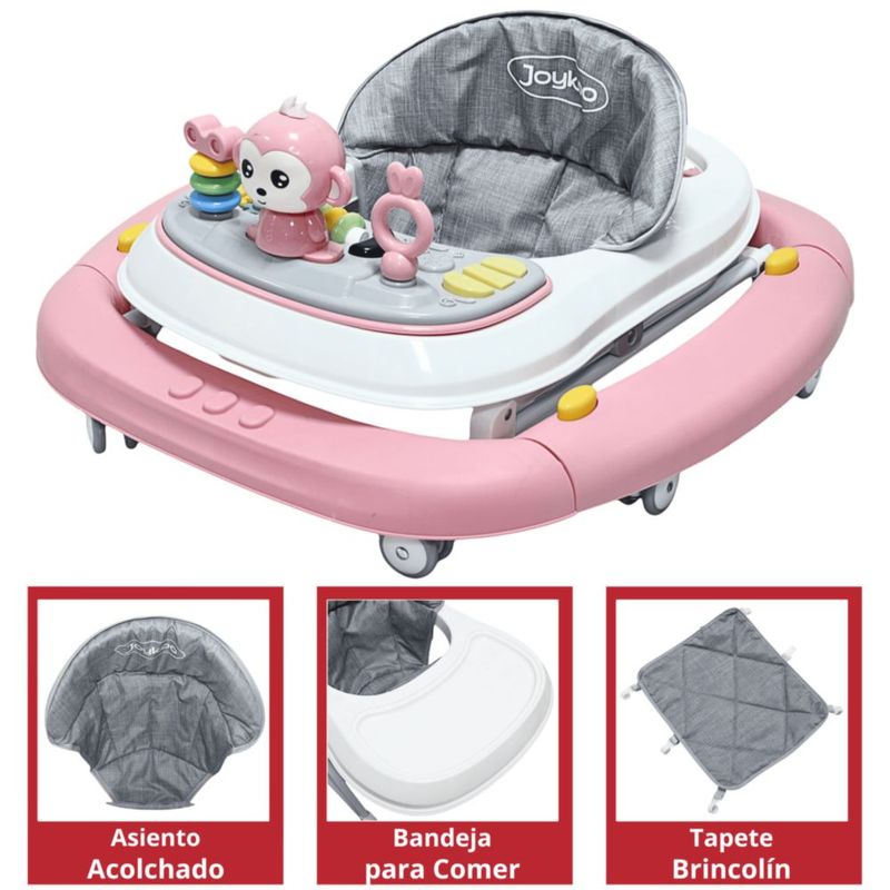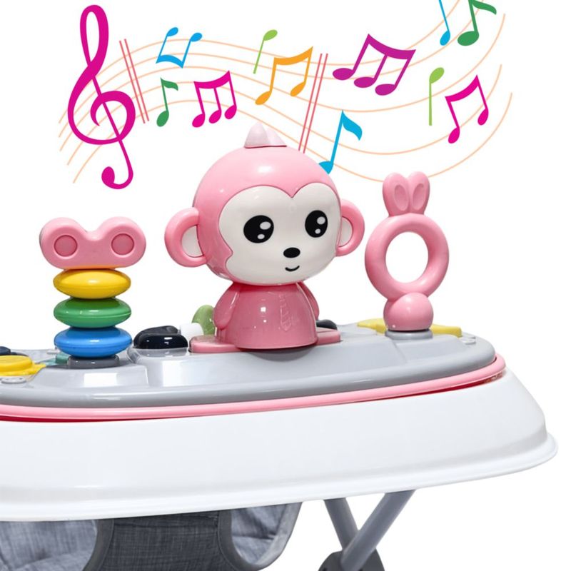 Andadera para Bebé Mecedora Mono Musical Bastón Dirigible Alturas Ajustables Plegable Tapete Brincolín - Rosa