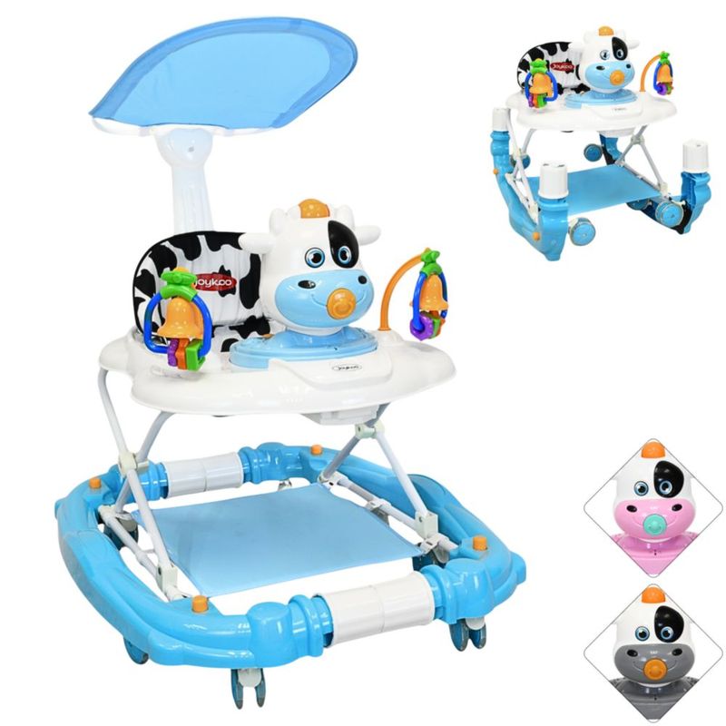 Bebés y juguetesBebésAndaderasAndadera para Bebé Mecedora Vaca con Sonido Bastón Toldo Altura Ajustable Ruedas de Goma Apta desde 6 meses - Azul