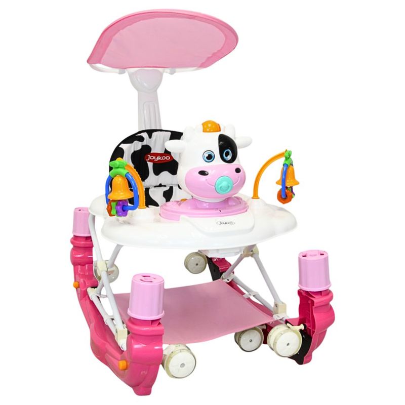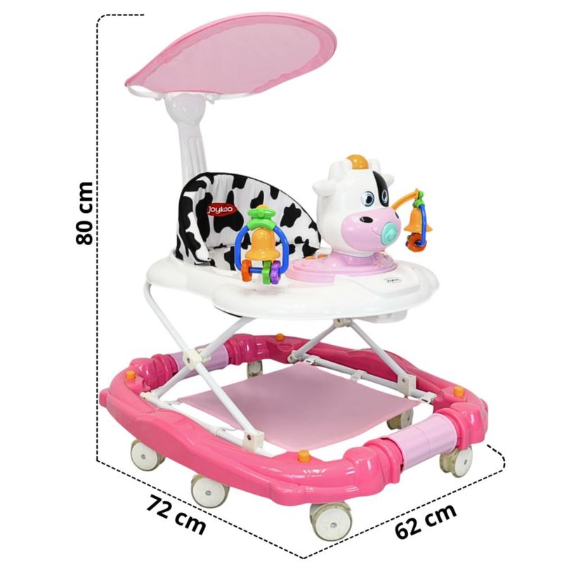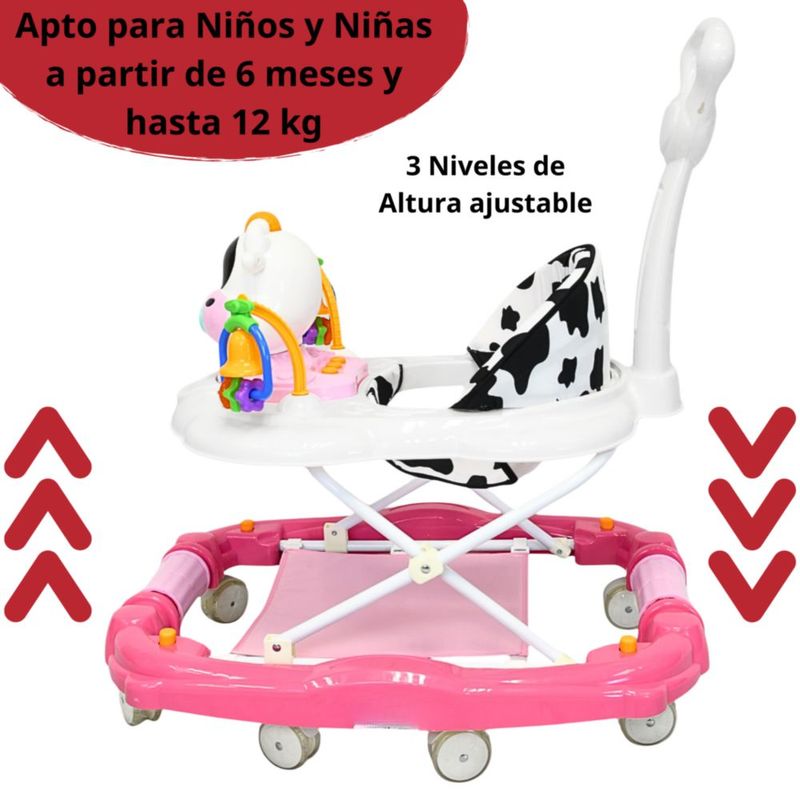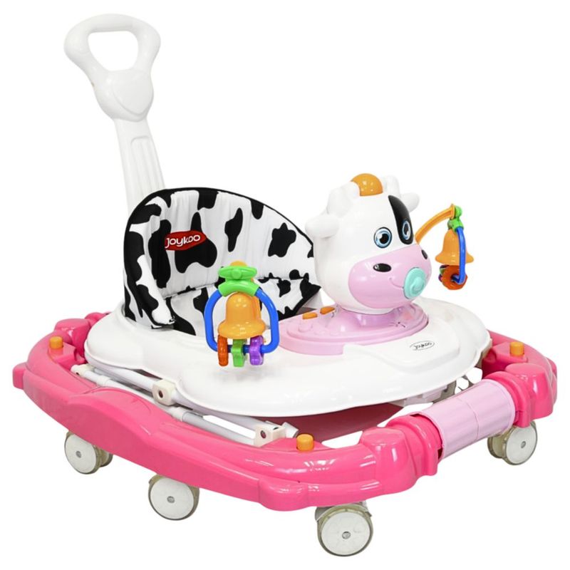 Bebés y juguetesBebésAndaderasAndadera para Bebé Mecedora Vaca con Sonido Bastón Toldo Altura Ajustable Ruedas de Goma Apta desde 6 meses - Rosa