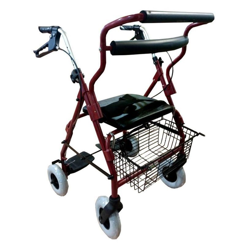 Andadera Rollator Hibrida De Aluminio Silla De Traslado Roja Eko