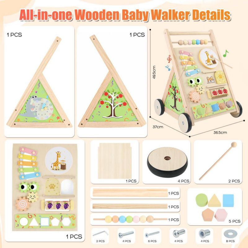 Andador de madera con ruedas para bebés de 6 a 12 meses, juguete Montessori para caminar, centro de actividades para niños de 1