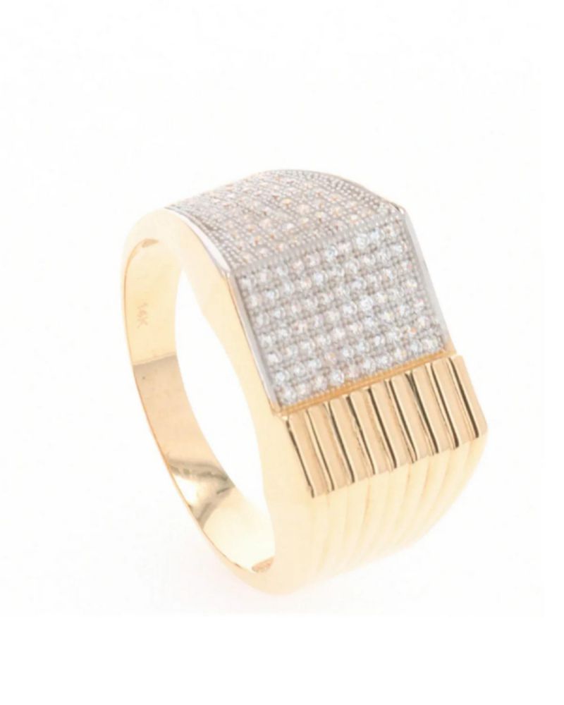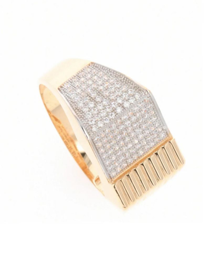 ANILLO CABALLERO DE ORO AMARILLO Y BLANCO 14K CON ZIRCONIAS TALLA 9