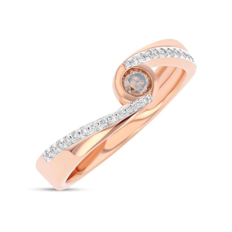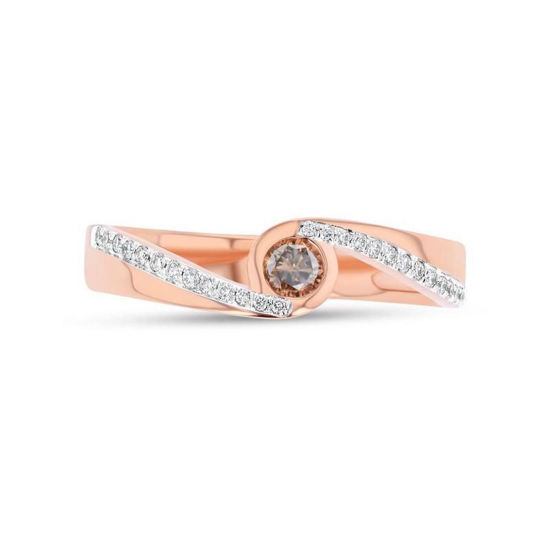 Anillo Solitario Oro Rosa 14K Con 30 Pts De Diamante Blanco Y Café