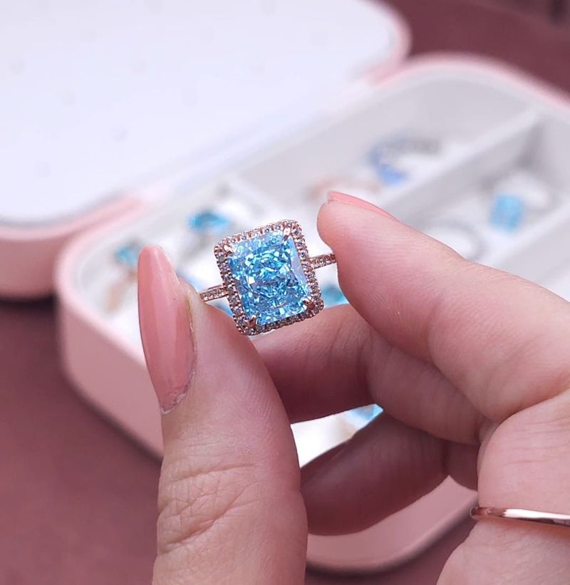 Anillo Violette aqua hecho de plata .925 bañado en oro rosa18K talla 5