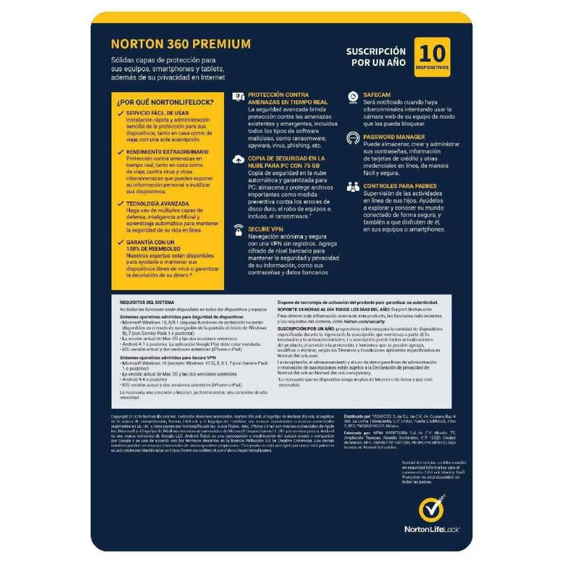 Antivirus NORTON SECURITY PREMIUM para 10 dispositivos por 1 año