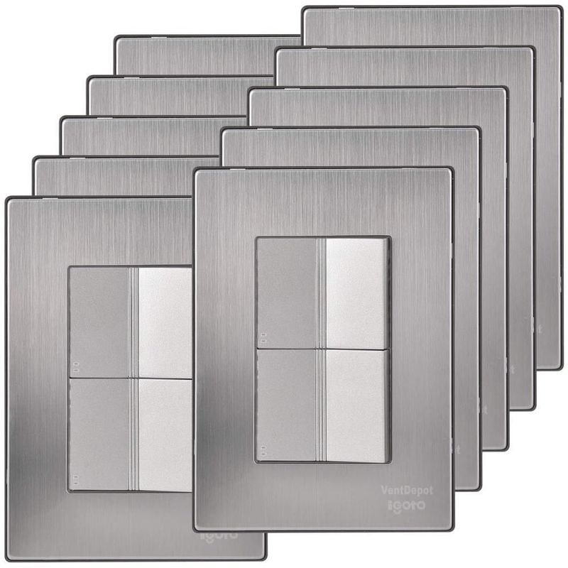 HerramientasMaterial EléctricoApagadores y ContactosApagador Escalera Alta Calidad MXIIU-006 Inoxium2ESilver Placa con Dos Apagadores Escalera