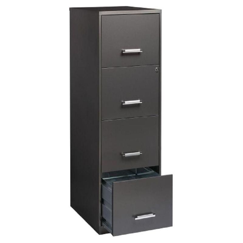 MueblesOficinaLibreros y EstantesArchivero Metálico 4 Gavetas Tamaño Carta Gris Oscuro con Sistema de Archivo Vertical