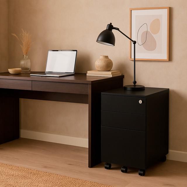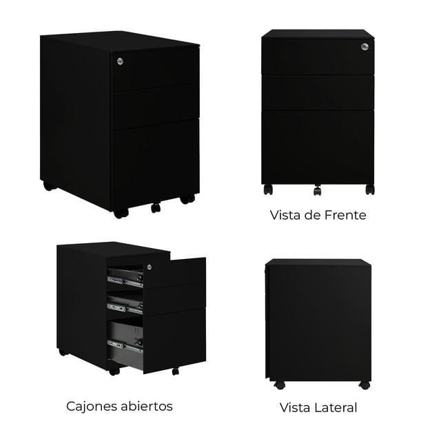 Archivero Metálico Sarre 2+1 Gavetas Negro con Diseño Funcional