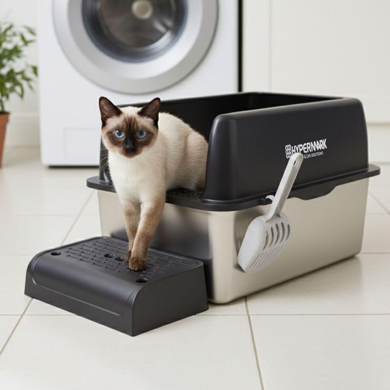 MascotasGatosArena y ArenerosArenero para gatos Hypermark Cat Bath acero inoxidable extra grande 20 Litros