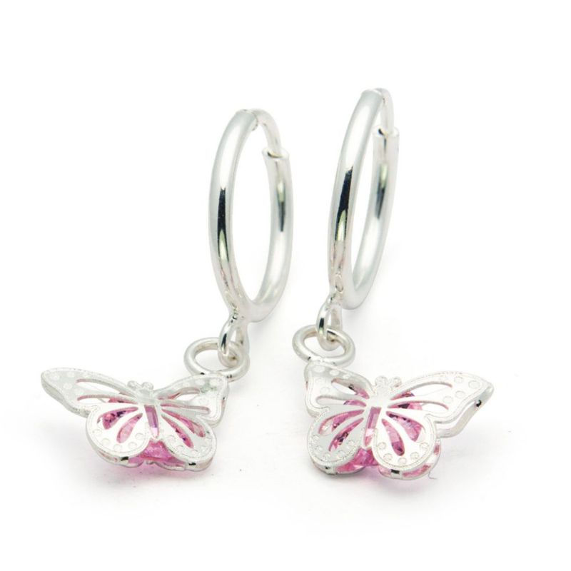 Arete Coqueta Mariposa circonia Rosa Plata .925 Horoz EP282