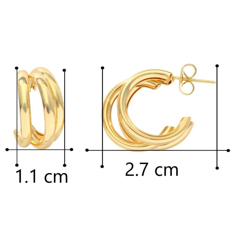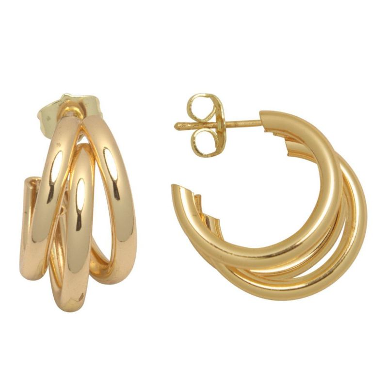 Moda y accesoriosJoyeríaAretesArete Triple Tubo Liso Pulido Chapa de Oro 18K Horoz EH794