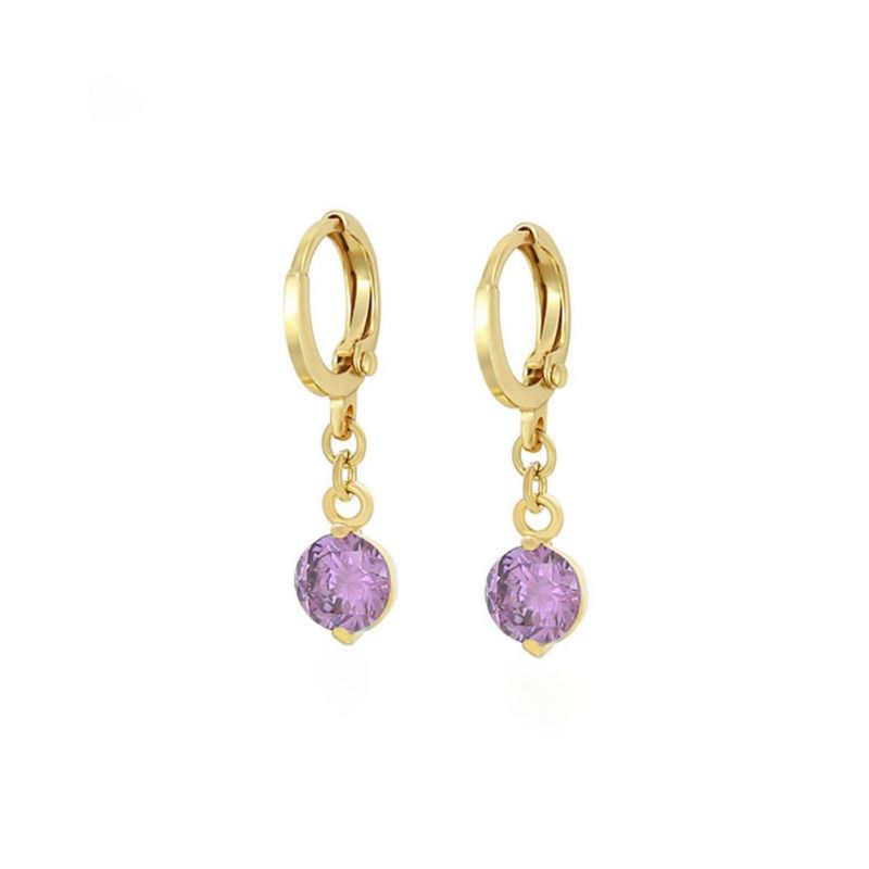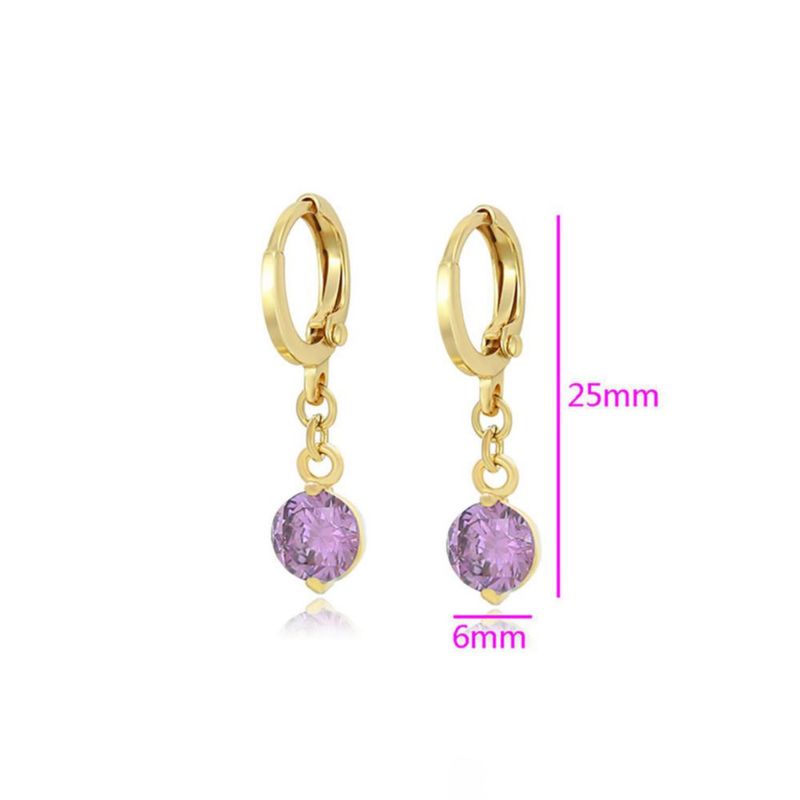Aretes Con Esmeralda, Amatista, Rubí, Swarovski Oro 14K Lam Violeta
