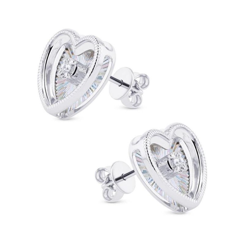 ARETES DE ORO BLANCO 14K CON FORMA DE CORAZÓN CON 3PTS DE DIAMANTE